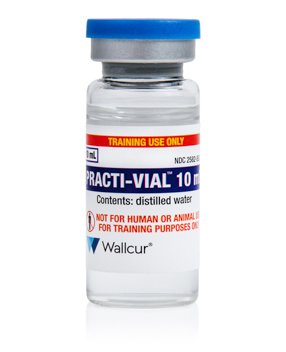 Practi-Vial™ 10 mL is filled with 10 mL of distilled water, is safe for use with Manikins and is ideal for skills training for nursing, EMS and pharm tech programs.