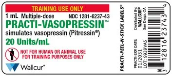 The Wallcur Practi-Vasopressin™ 1 mL Peel-N-Stick Labels, for clinical training, are designed to simulate 20 units/1 mL of the real drug, vasopressin (Pitressin®).